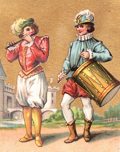 Fijfer en trom spelers waren dikwijls gekleed in speciale kostuums, die door hun ‘werkgevers’ werden verstrekt. Zogezegde historische kostuums werden voor de eerste keer vermeld op het einde van de 19e eeuw.